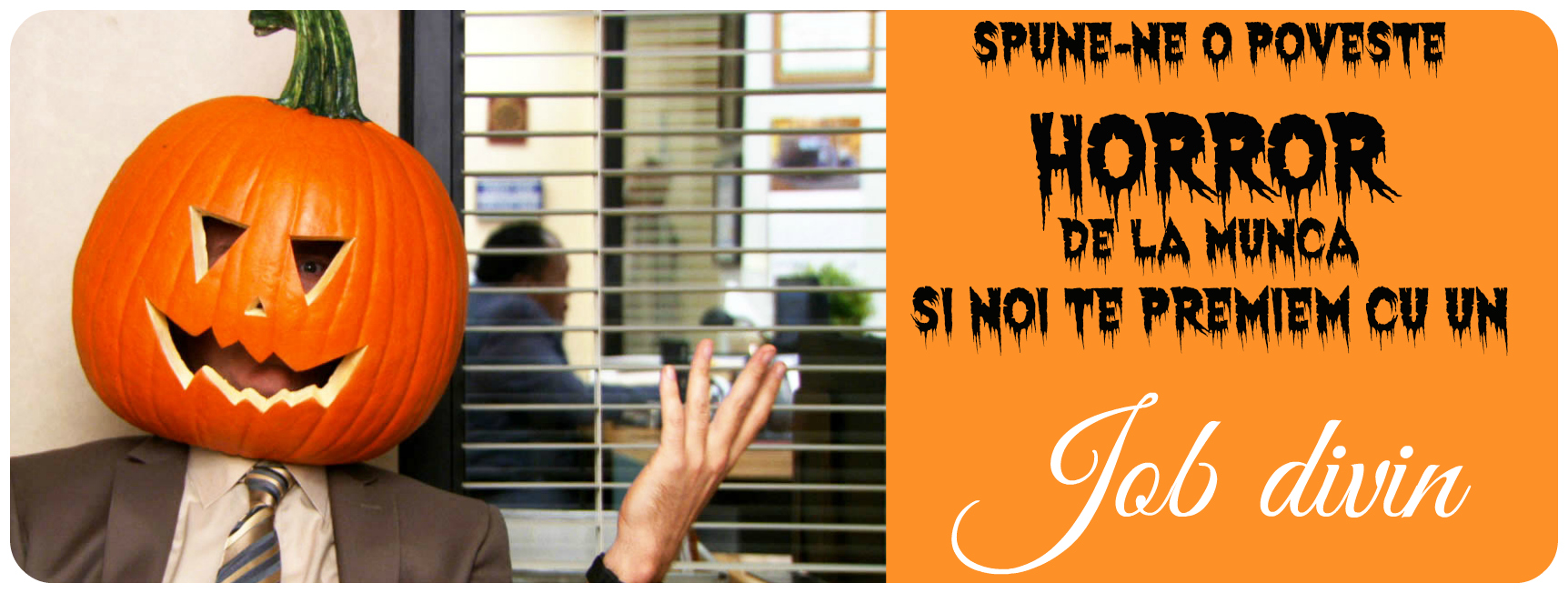 Halloween-ul asta ai mare bafta, pentru ca in perioada 27 octombrie – 6 noiembrie 2016 problemele din cariera ti se rezolva! Scrie povestea ta horror, fa o poza sau un film de groaza de la locul de munca si trimite-le catre Banca de Joburi. Primesti in schimb un job divin – sigur, rapid si respectabil!