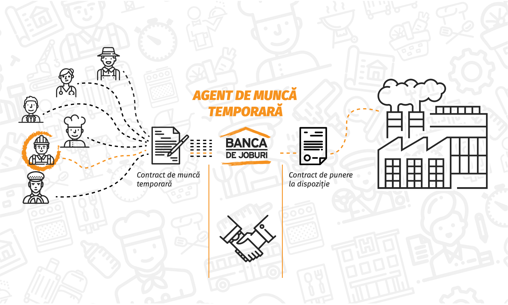 În această perioadă angajații rămân pe statul de plată al agentului de muncă temporară, care se va ocupa și de gestionarea efectivă a acestora.